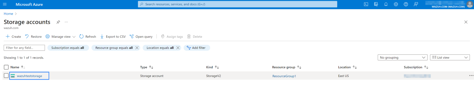 Go to the Storage accounts section of your Microsoft Azure environment and select the account of interest.
