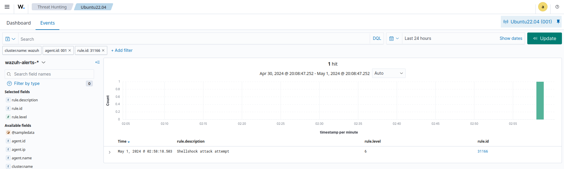 Wazuh is capable of detecting a Shellshock attack by analyzing web server logs collected from a monitored endpoint. In this use case, you set up an Apache web server on the Ubuntu endpoint and simulate a shellshock attack.