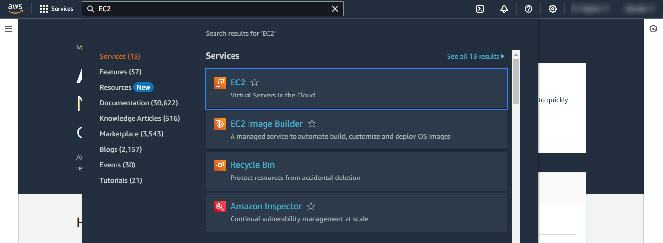 On your AWS console, search for "EC2" or go to Services > Compute > EC2.