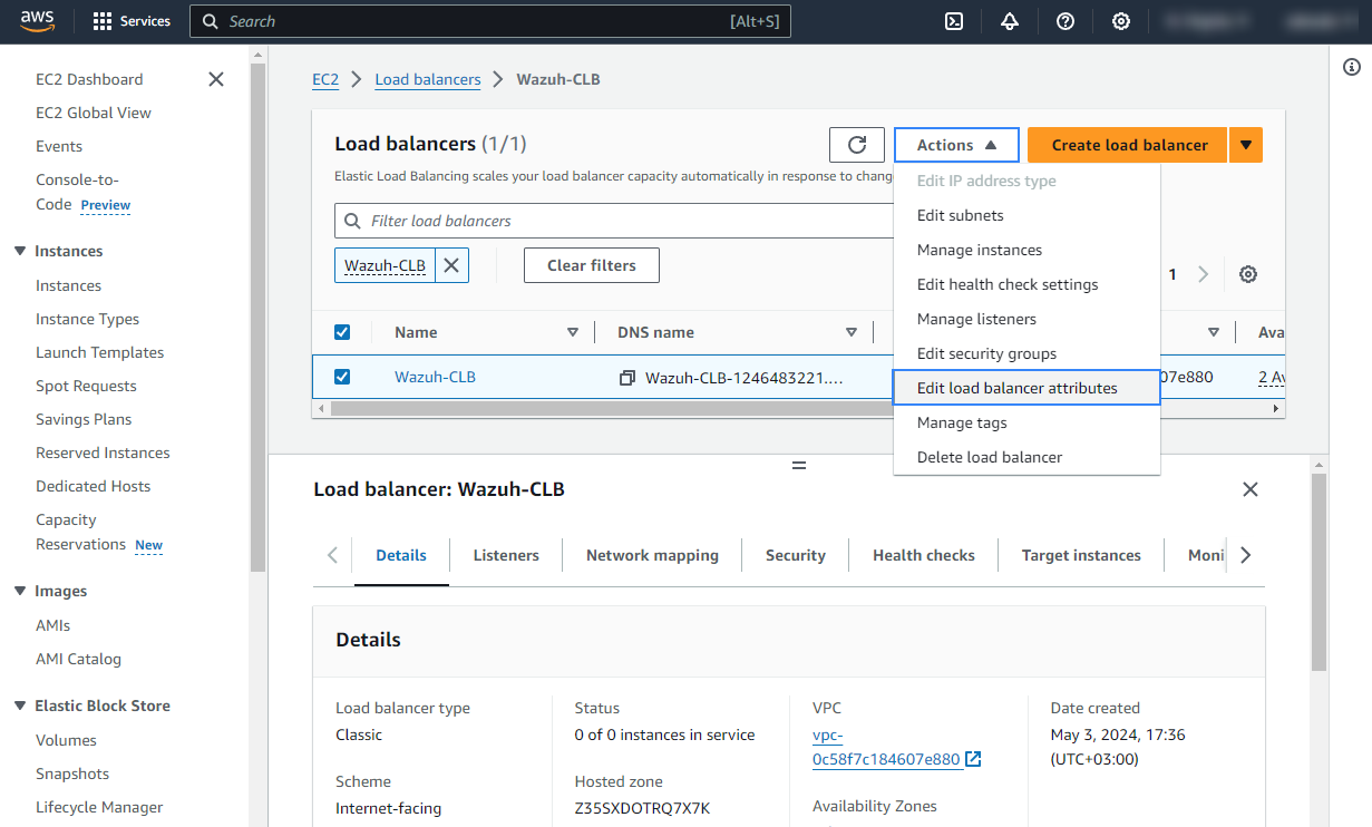 The following sections cover how to configure the Amazon CLB service to integrate with Wazuh.