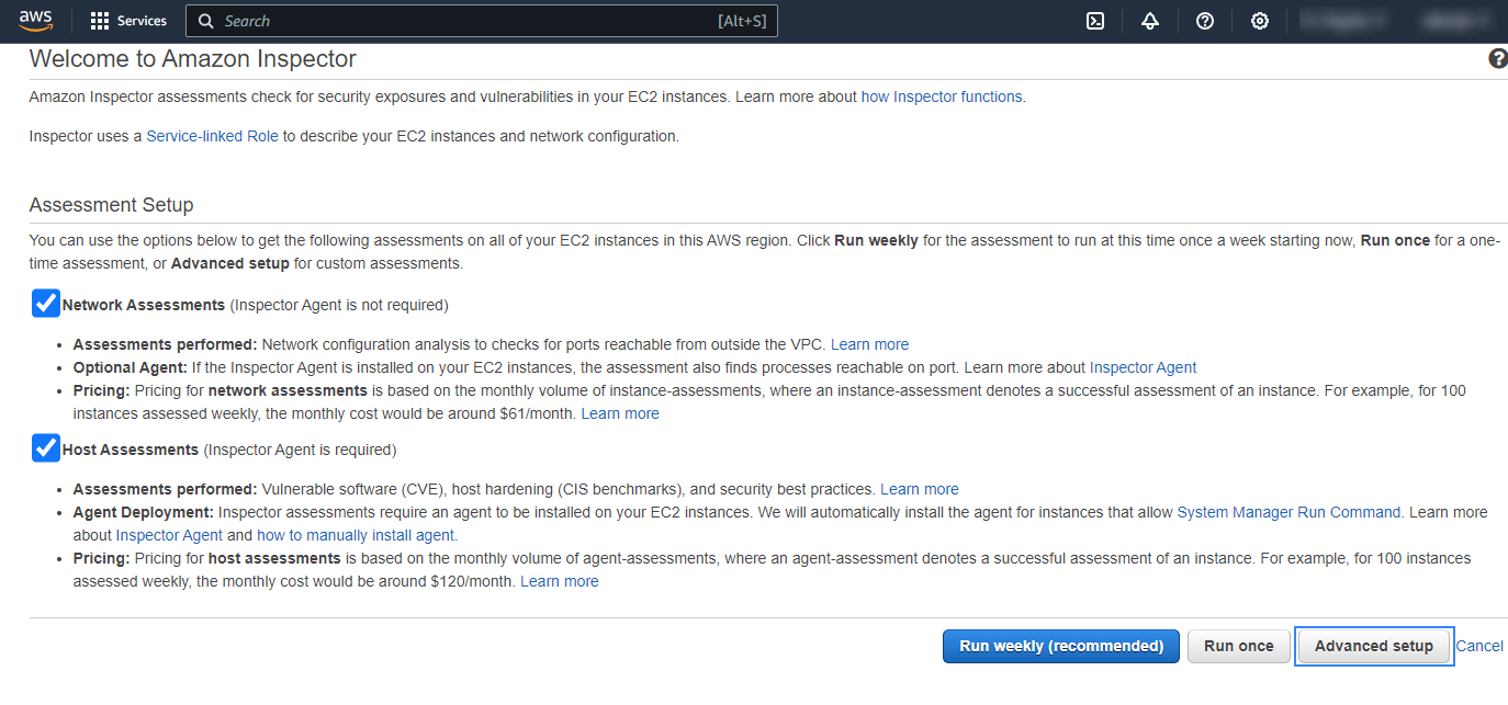 Amazon Inspector Classic configuration