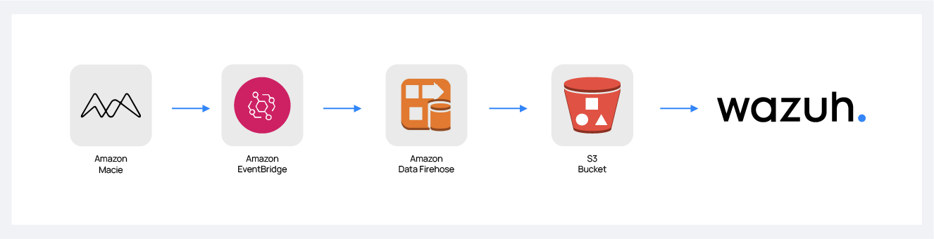 The following sections cover how to configure different services required to integrate AWS Macie service with Wazuh.