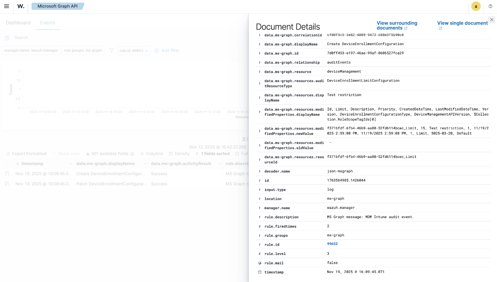 Mobile Device Management (MDM) tools, such as Microsoft Intune, enable organizations to manage devices. By integrating Microsoft Graph with Wazuh, organizations can monitor Microsoft Intune logs.