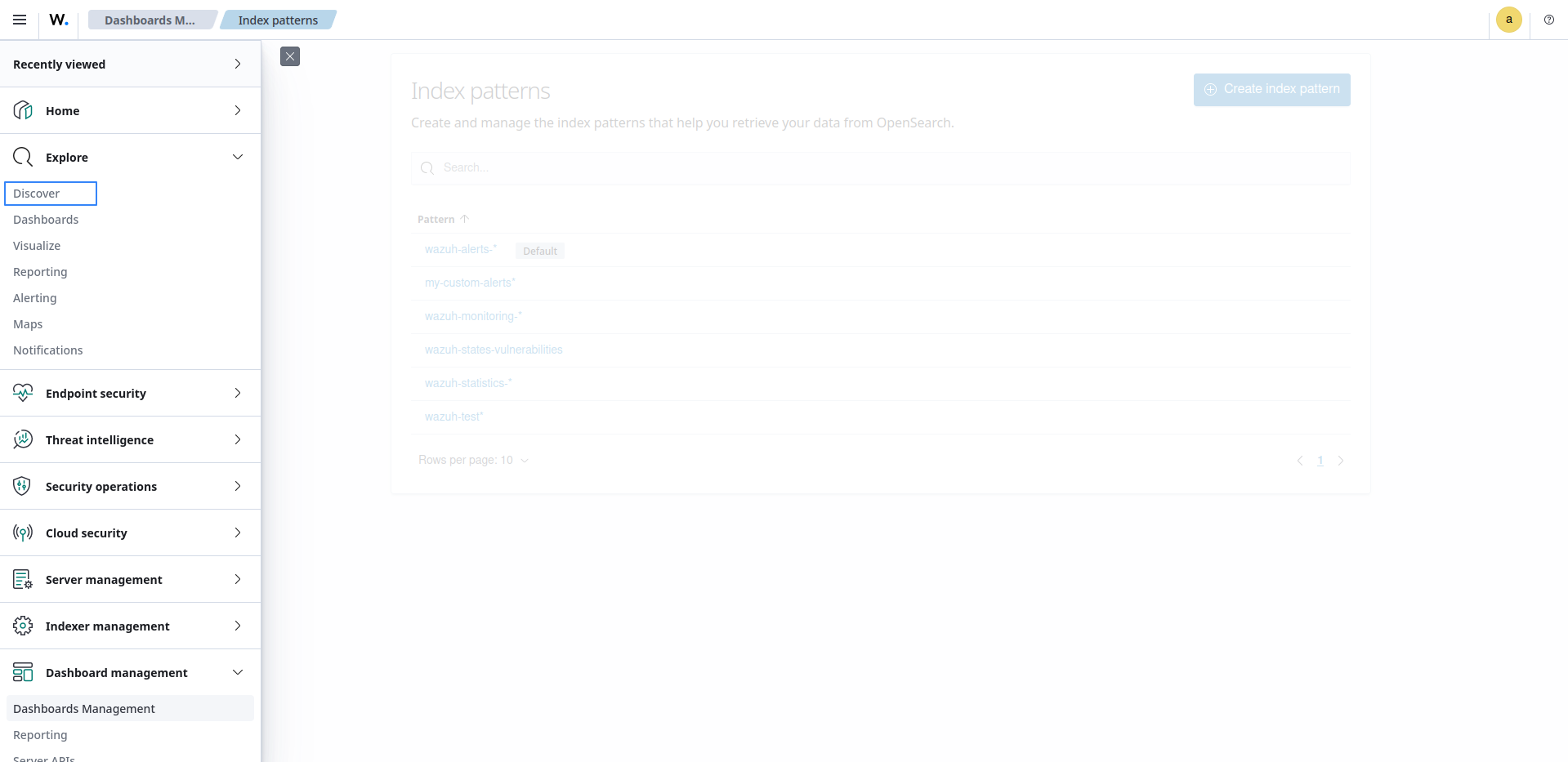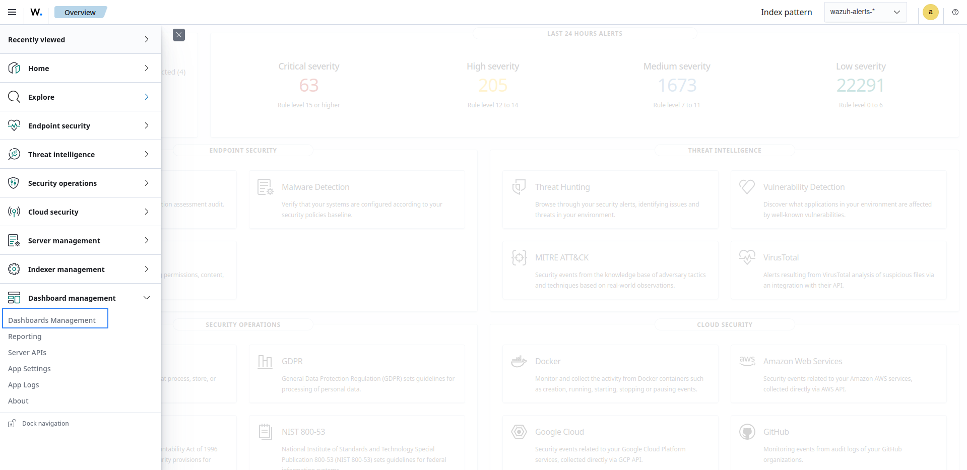 Select ☰ > Dashboard management > Dashboards Management in the Wazuh dashboard.