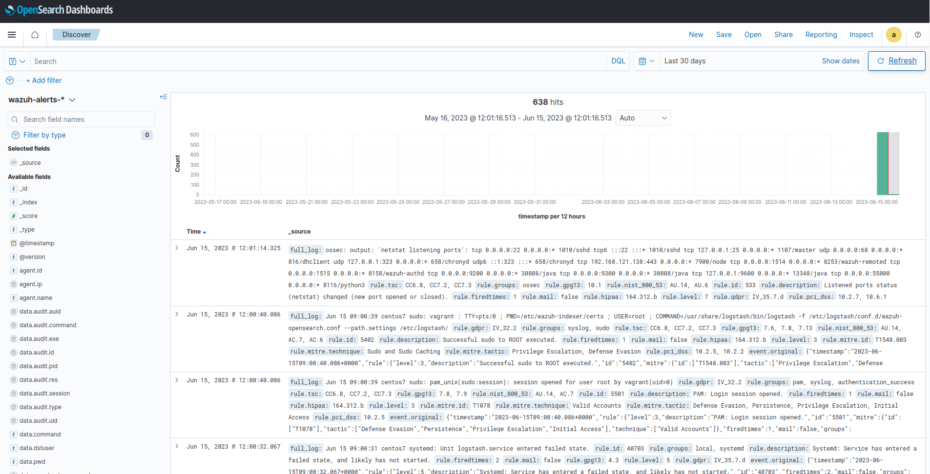 We use Logstash to forward security data in the /var/ossec/logs/alerts/alerts.json alerts file from the Wazuh server to the OpenSearch indexes.