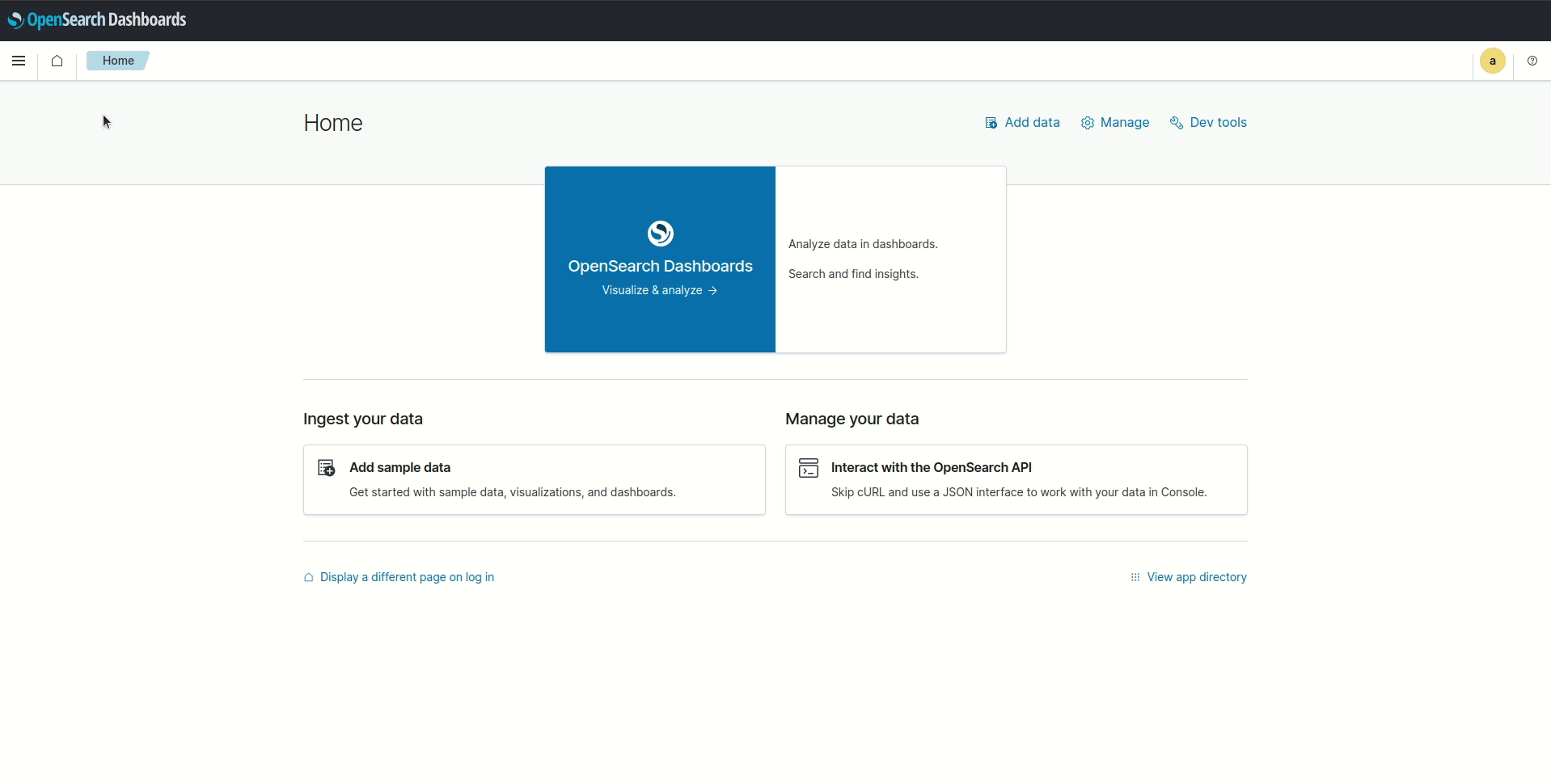 In OpenSearch Dashboards, navigate to Management > Dashboards management.