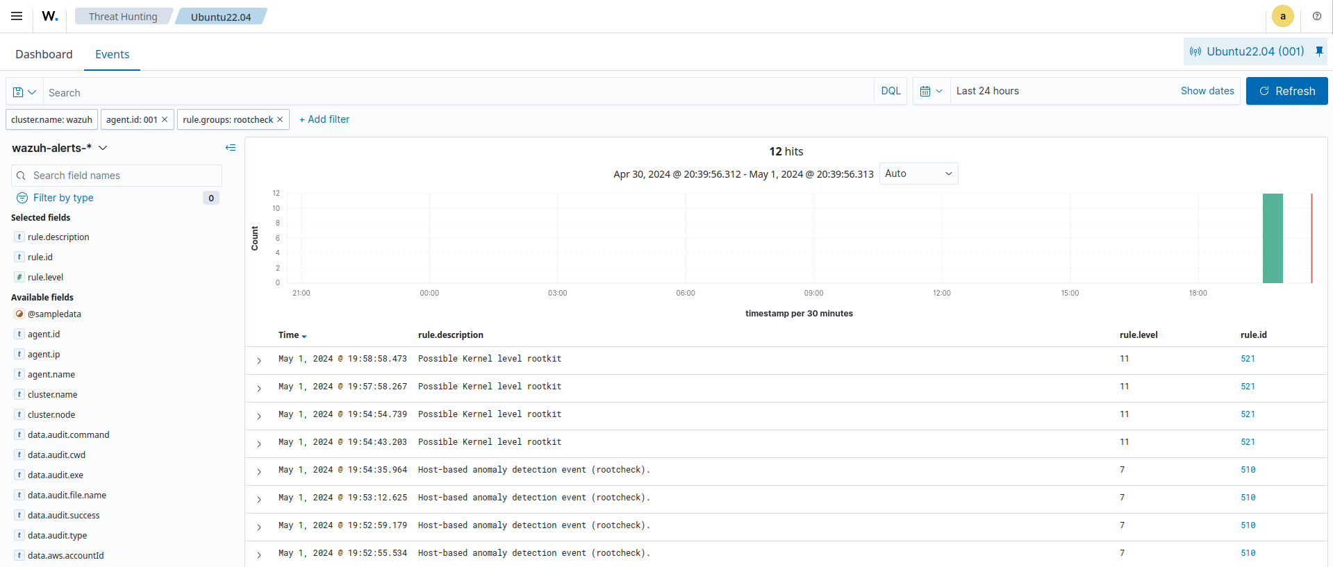 In this use case, we show how Wazuh detects hidden processes created by a rootkit on a Linux endpoint. In this use case, you deploy a kernel-mode rootkit on an Ubuntu endpoint.