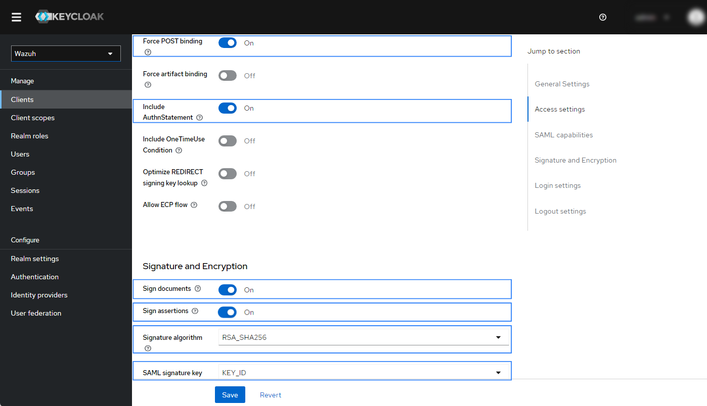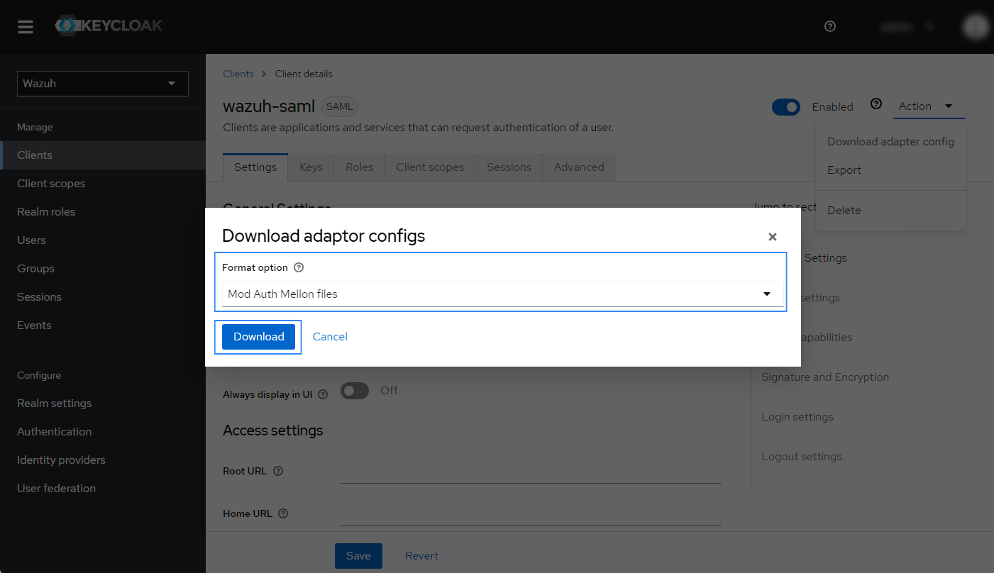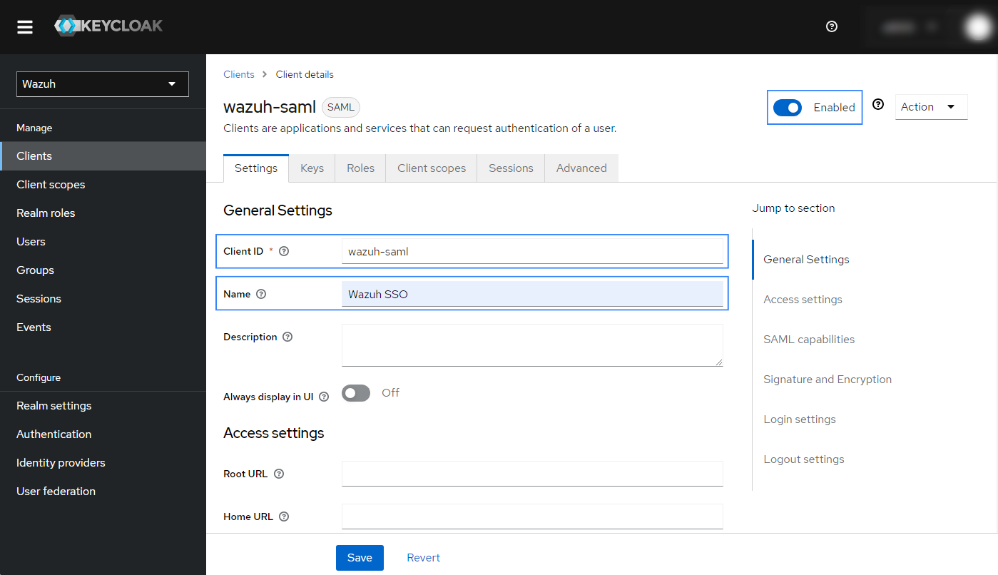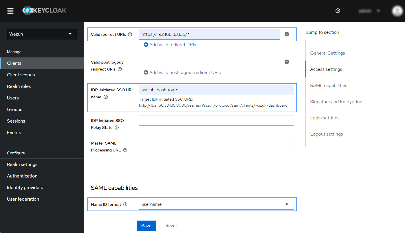 Navigate to Clients and select the name of your client. In our case, this is wazuh-saml.