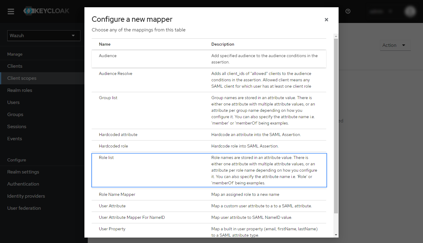 wazuhRoleKey. You can use any name here.Role attribute name: