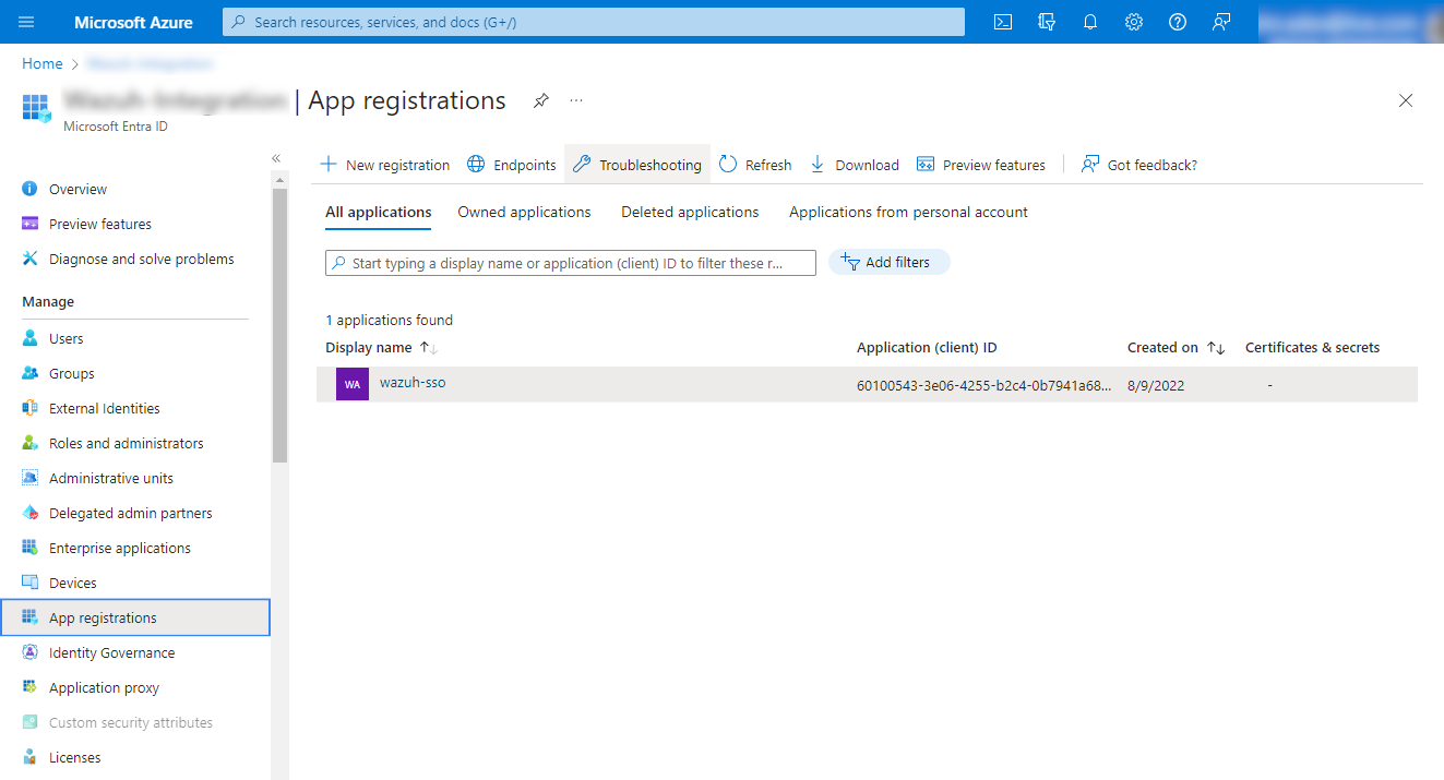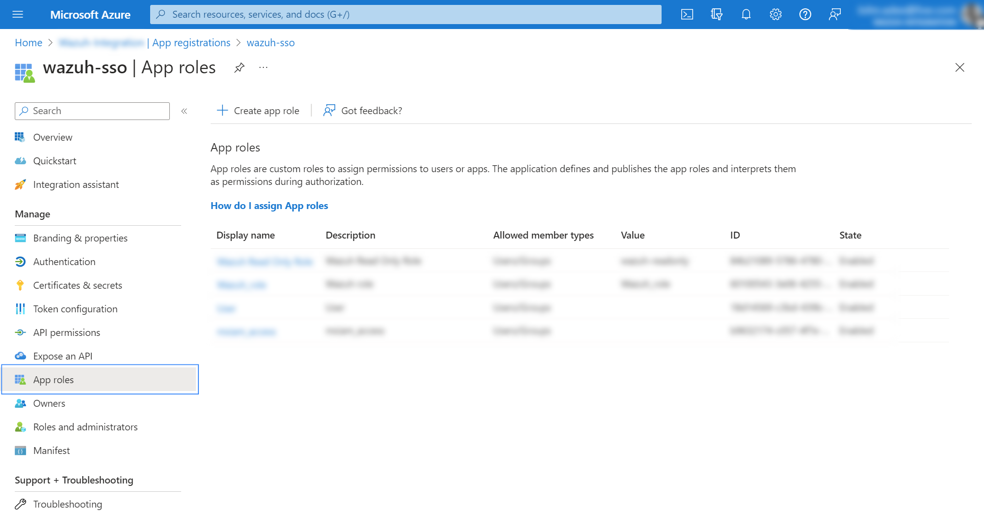 roles_mapping.ymlfile to map the role we have in Microsoft Entra ID to the appropriate Wazuh indexer role. In this case, we map theWazuh_rolein Microsoft Entra ID to theall_accessrole in Wazuh indexer:all_access: reserved: false hidden: false backend_roles: - "admin" - "Wazuh_role" description: "Maps admin to all_access"