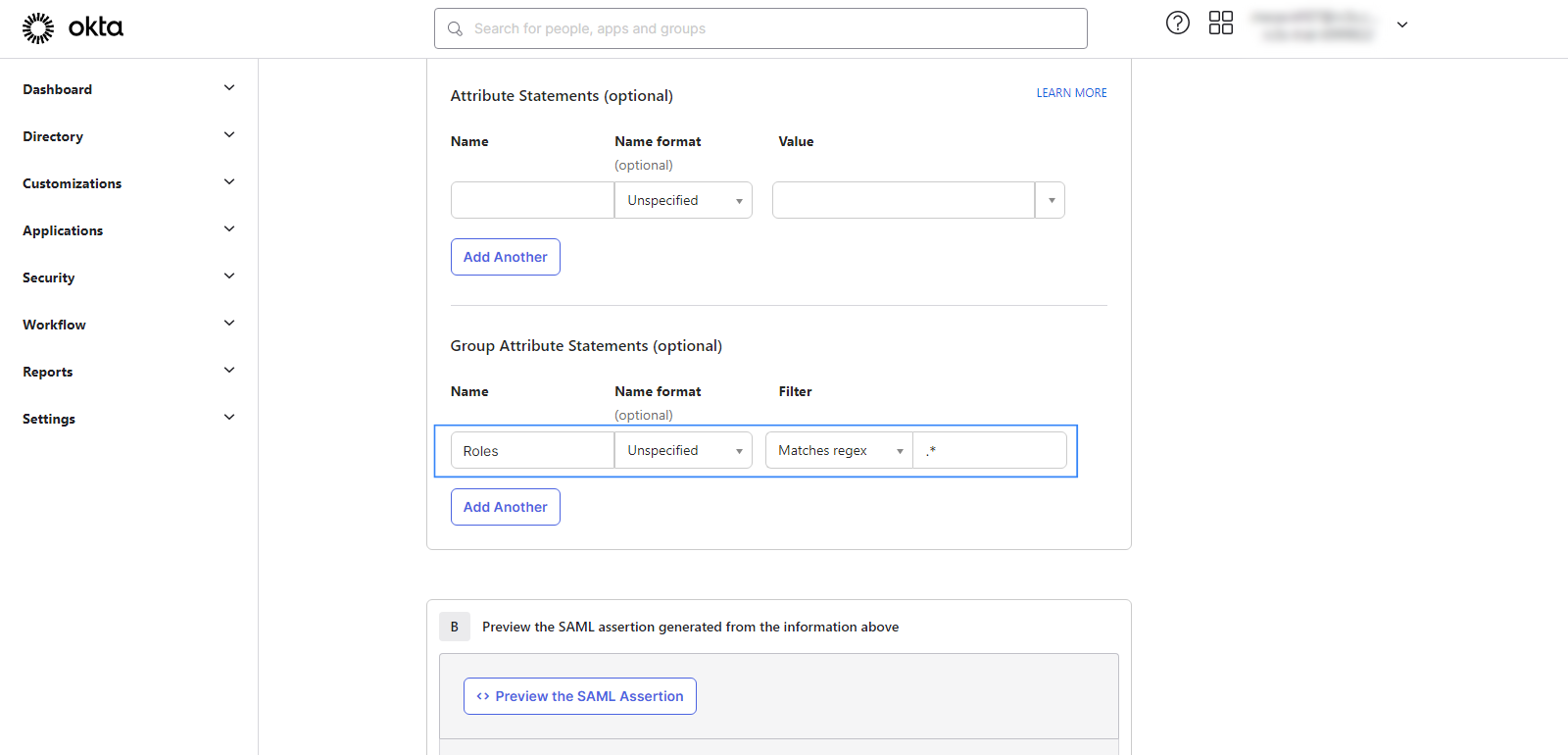 FINDValue: Assign the name you gave to your group in Step 3 of Okta configuration, in our case, this is