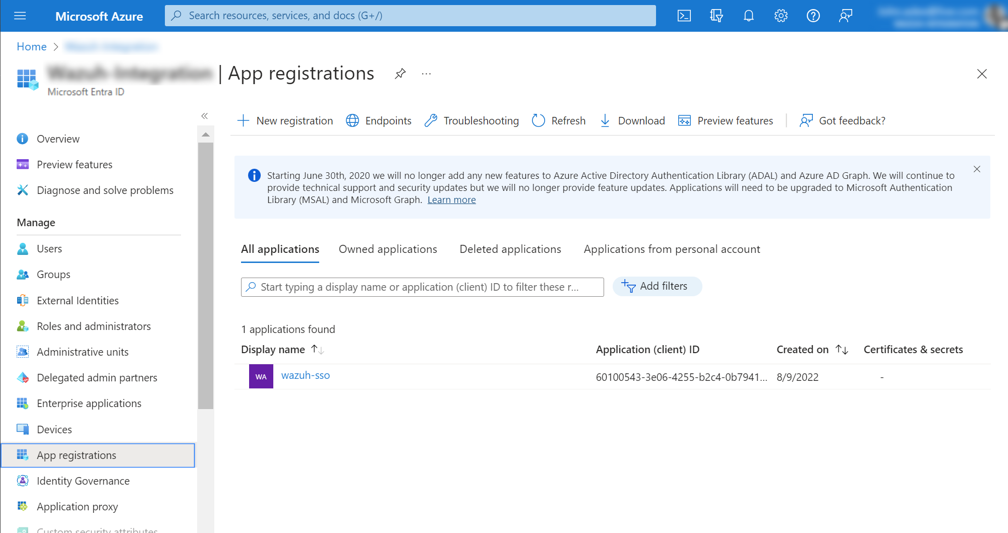Microsoft Entra ID (ME-ID) is a cloud-based identity and access management service by Microsoft. It provides single sign-on, multifactor authentication, and access to internal and cloud developed applications. In this guide, we integrate the Microsoft Entra ID IdP to authenticate users into the Wazuh platform.