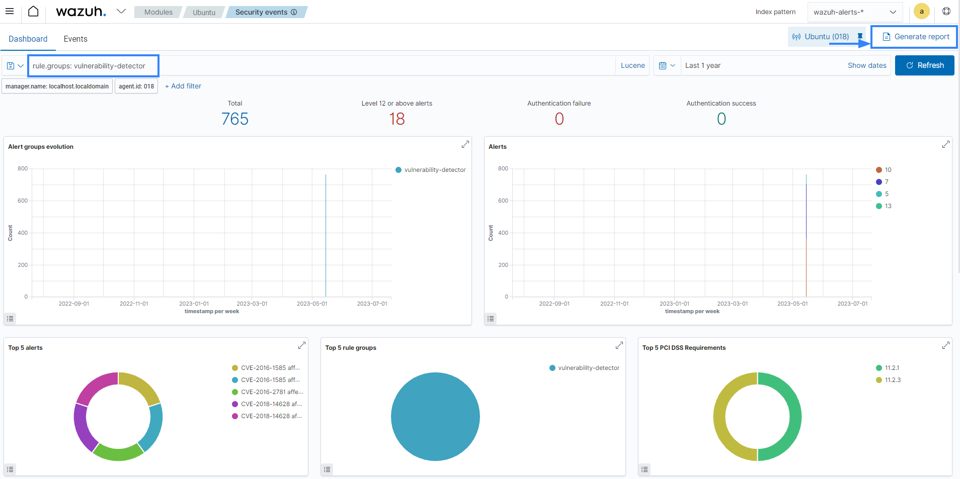Wazuh provides users with the ability to download a report that contains security events related to discovered and resolved vulnerabilities. This feature allows users to identify endpoints with unresolved vulnerabilities and keep track of remediation activities.