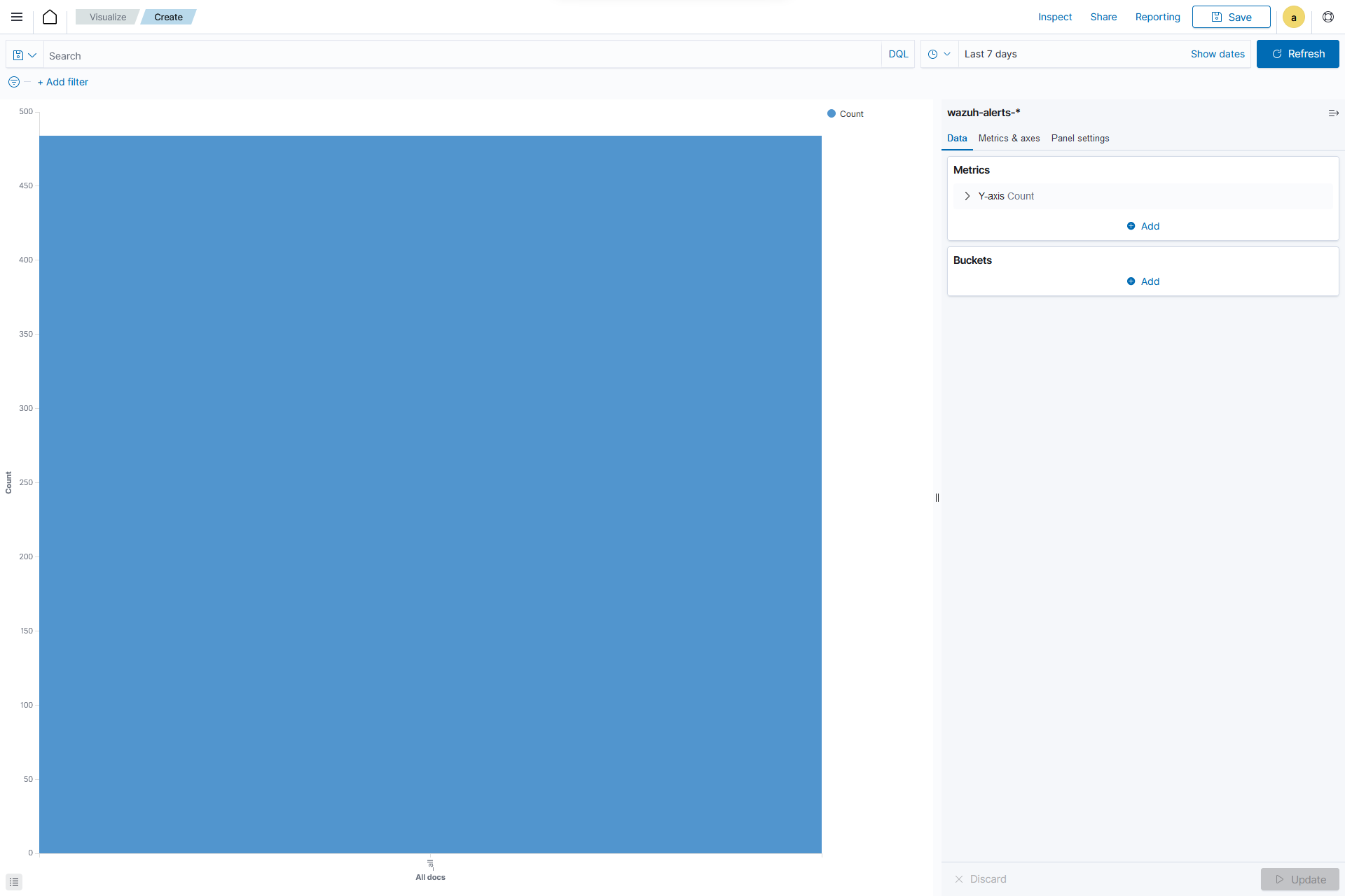 wazuh-alerts-*as the index to use.On the Metric in Metrics data, under Event, select a log data.